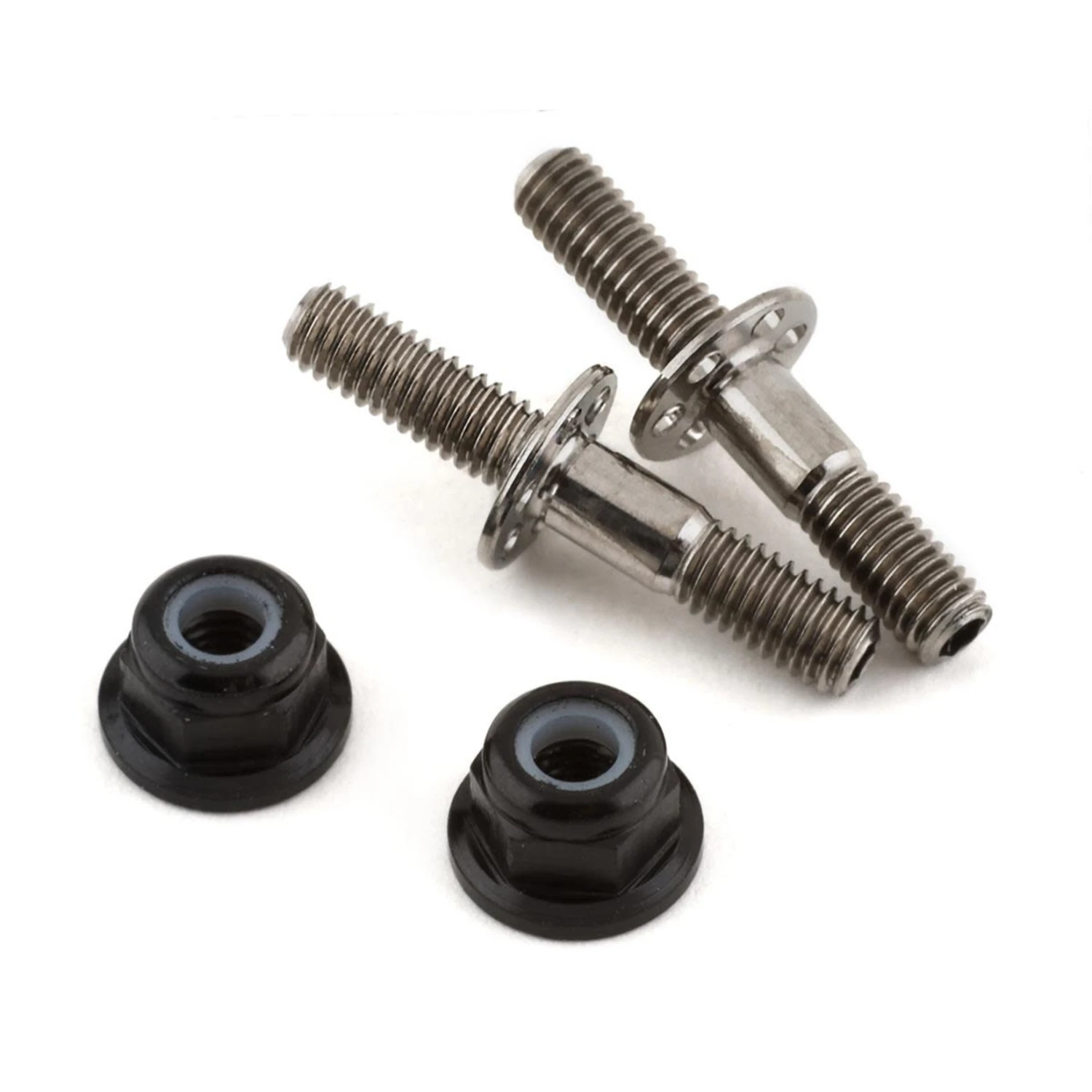 - Each package includes (2) lower shock mount screws and (2) aluminum M3 flanged locknuts.